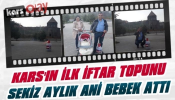 Kars Olay- Kars'ta ramazan aylarında iftar topunu ateşlemekle görevli Tacettin Durmuş bu yıl ilk iftar topunu ateşlemek için 8 aylık kızı Ani Durmuş ile beraber Evliya Camisine gelerek iftar vaktinde ilk ramazan topunu ateşledi.