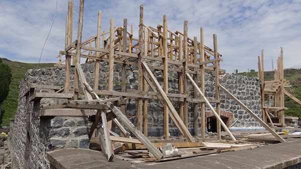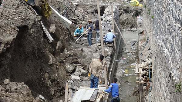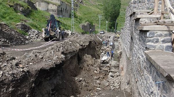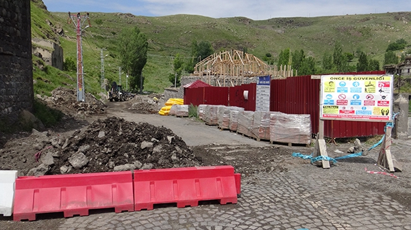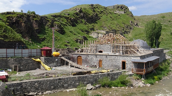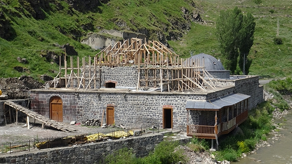 Mazlumağa ve Muradiye Hamamlarının turizme kazandırılması projesi Kars Valiliği İl Özel İdaresi kontrolünde DAP Bölge Kalkınma İdaresi Başkanlığı tarafından finansı sağlanan, restorasyon kapsamında hamamın çalışmaları sürüyor.