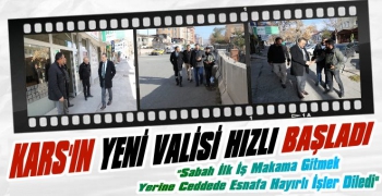 Kars Olay- Son Valiler kararnemesi ile Kars'a atanan yeni Kars Valisi Türker Öksüz hızlı başladı. Sabah saatlerinde makama gitmeden önce Kars'ın sokaklarını gezerek esnafa hayırlı işler dileyen Vali Türker Öksüz daha sonra makama geçti. Çiçeği burnunda valinin makama gidip oturmak yerine Kars'ın sokaklarını arşınlaması ve esnafa hayırlı işler dilemesi ise takdirle karşılandı. Öte yandan dün yaptığı açıklamada da “Valiliğimizin kapısının bütün vatandaşlarımıza açık olduğunu burada ifade etmek isterim. Bizim anlayışımız fakir fukarayı, garip gurebayı Cenab-ı Hakk’ın emaneti kabul eden bir anlayıştır." demişti.