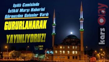 Kars Olay-Vatandaşlar, ellerinde bulunan Atatürk posteri ile Türk bayraklarını açarak alkışlar eşliğinde coşkuyla İstiklal Marşını söyledi. Saat 21.00'de Kars Işıklı Cami gece düzenlenen kutlamalara damgasını vurdu. Işıklı caminde dün gece İstiklal Marşı okundu.