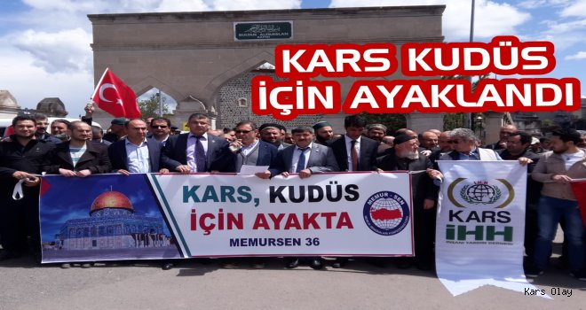 Kars Olay- Kars'ta Evliya Camisi'nde kılınan öğle namazı sonrasında Memursen, İHH İnsani Yardım Derneği, sivil toplum örgütleri ve vatandaşların katılımı ile İsrail ve ABD'nin Filistin halkına yaptığı zulüm kınanarak protesto gösterisi düzenlendi.