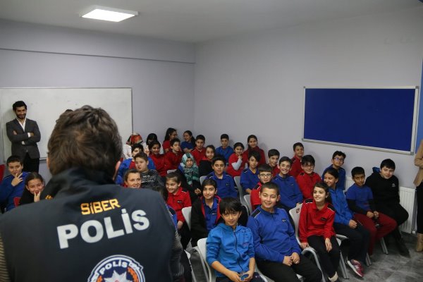Kars Olay-Kars Emniyet Müdürlüğü Siber Suçlarla Mücadele Şube Müdürlüğü’nce “Bilinçli İnternet kullanımı konusundaki farkındalığın artırılması, güvenli internet kullanımı ve internetin hayatımızdaki yeri” konularında bilgilendirme amacıyla Kars Çözüm Ortaokulu öğrencilerine seminer verildi.