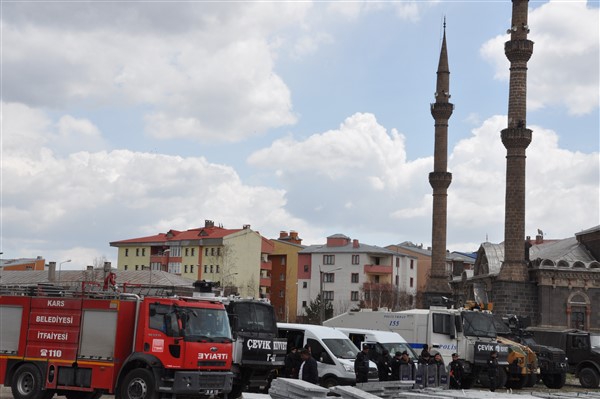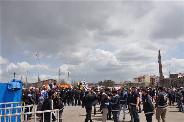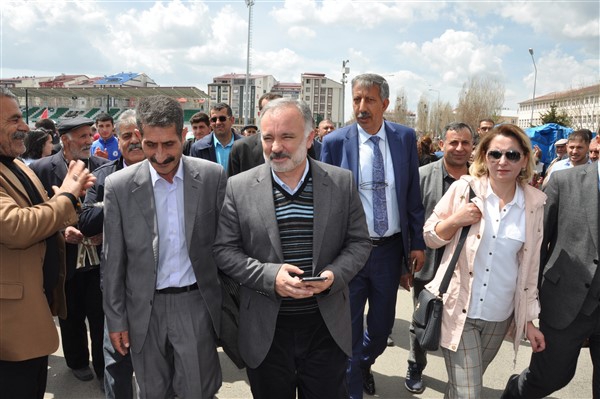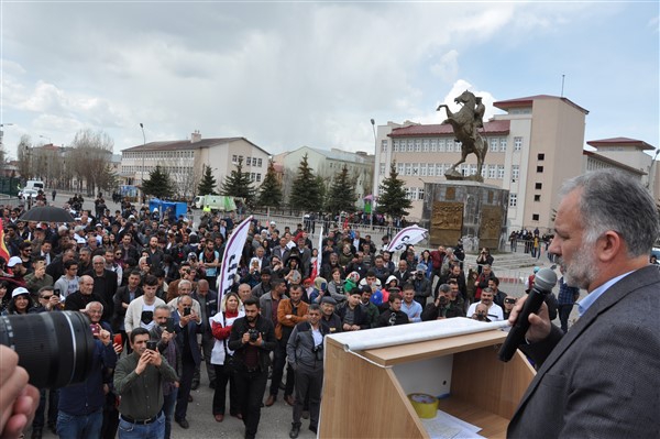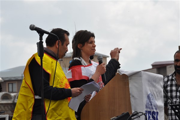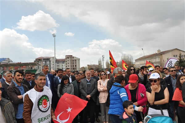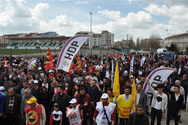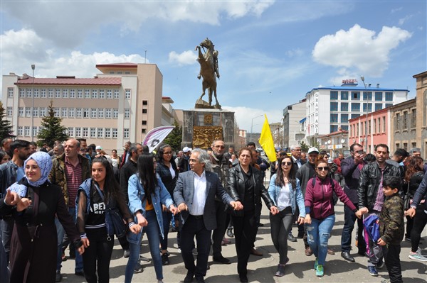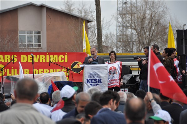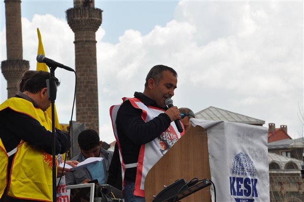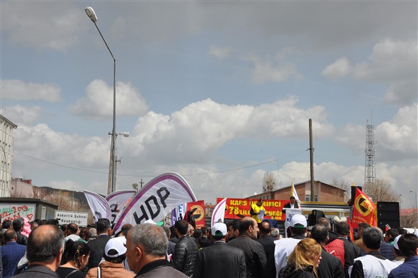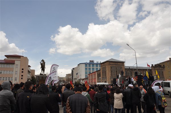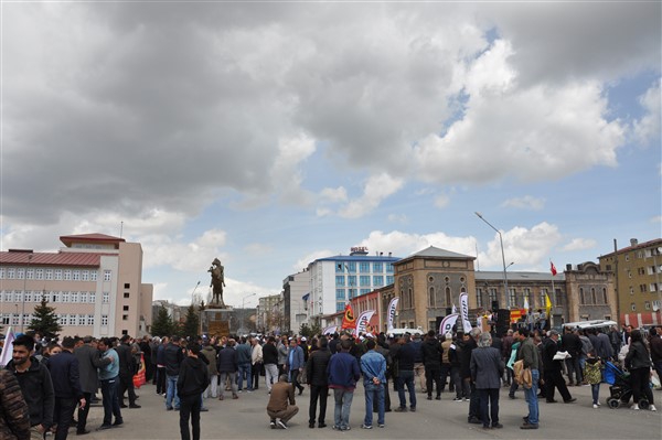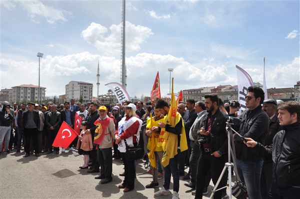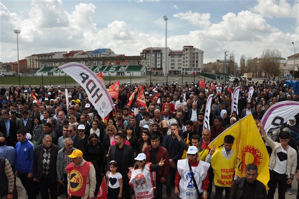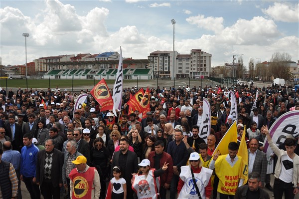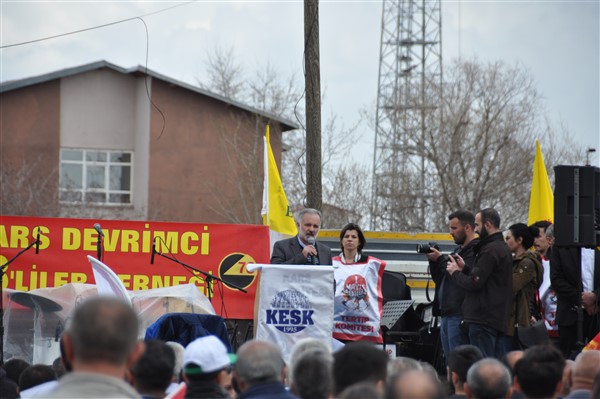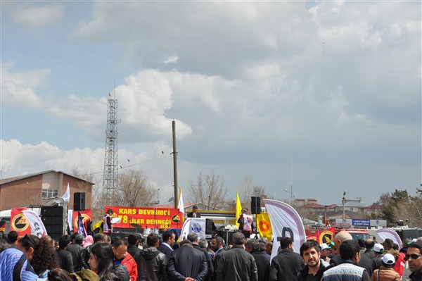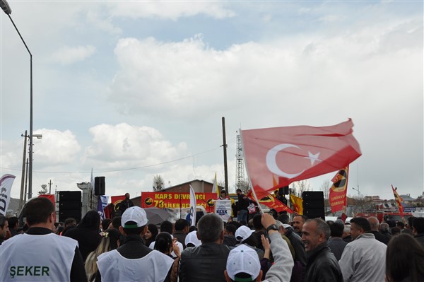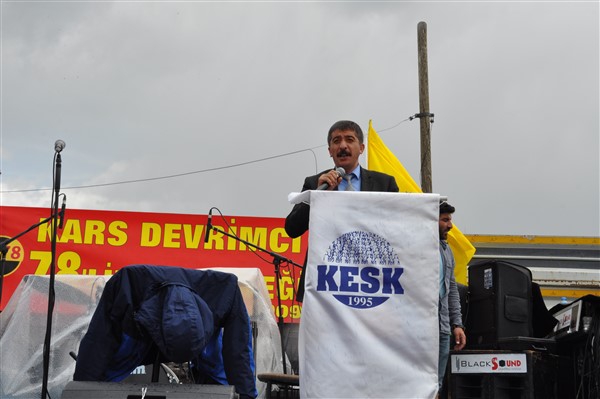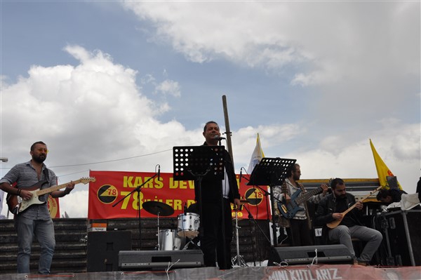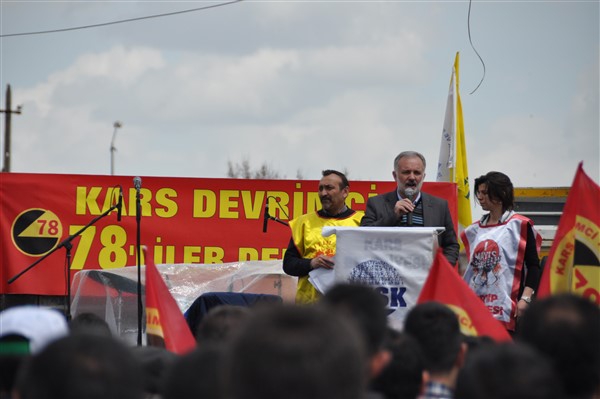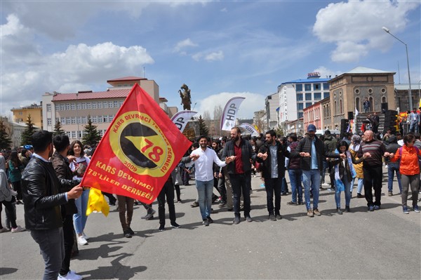 Polis ekipleri tarafından alınan güvenlik noktasında ki aramadan geçerek kutlama alanına gelen vatandaşlara burada sendikalar tarafından 1 Mayıs hakkında konuşmalar yapıldı. Daha sonra Kars Belediye Başkanı Ayhan Bilgen tarafından yapılan konuşmada; "Değerli arkadaşlar Hz. Ali'nin güzel bir sözü var haksızlık karşısında eğilmeyin, Haksızlık karşısında eğilirseniz hakkınızla beraber onurunuzu da kaybedersiniz. Bu söz bugün dünyada olan her şeyi özetlemeye yetiyor. Elbette emek bir haktır, ya değerlerden yana olursunuz yada değerlere karşı olursunuz. Emek ve işçilerle ilgili yaşadığımız sorunlar bozuk düzenden kaynaklanıyor. Emeği bir insani değer olarak görüp onu savunmazsak onu korumak mümkün olmaz." dedi.