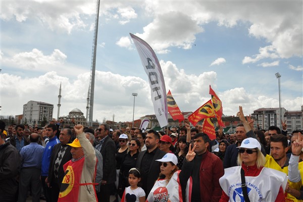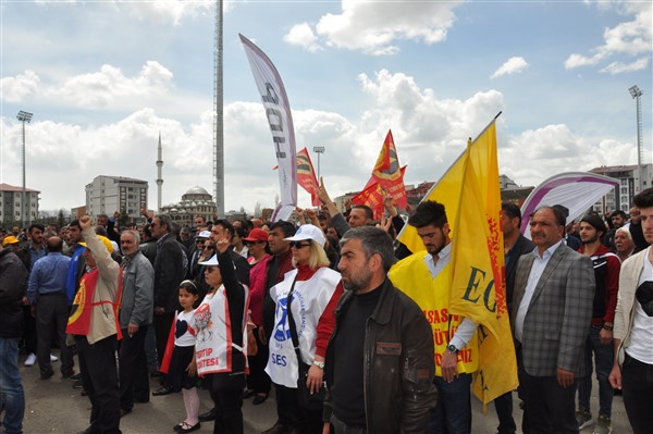 Kars Olay- 1 Mayıs Tertip Komitesi tarafından çeşitli sendikaların katılımı ile gerçekleştirilen 1 Mayıs İşçi Bayramı Cumhuriyet Meydanında renkli görüntülerle coşkuyla kutlandı.