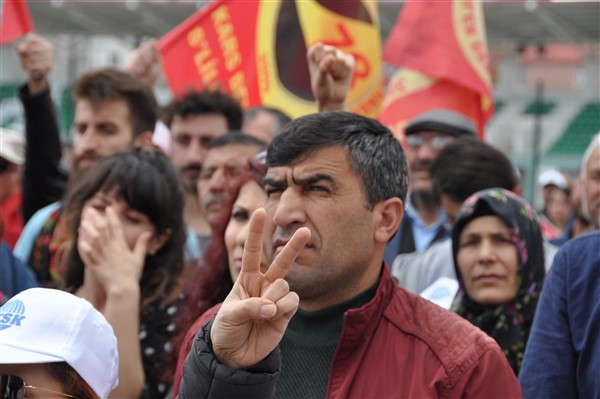 Kars Belediye Başkanı Ayhan Bilgen ve sendika temsilcileri tarafından Ankara Tren Garı'nda ölenlerin anısına beyaz güvercin gökyüzüne bırakıldı. Daha sonra 1 Mayıs İşçi Bayramı kutlamaları sanatçı Servet Kocakaya'nın sahne almasıyla devam ederken katılımcılar halaylar çekerek 1 Mayıs İşçi Bayramı'nı kutladılar. Program sanatçının eserlerini seslendirmesinin ardından sona erdi.