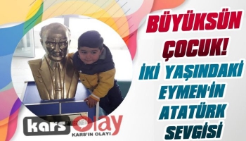Kars Olay- Karsın Selim İlçesine bağlı Bayburt Köyü'nde yaşayan 2 yaşındaki Eymen Aymelek'in Atatürk sevgisini gösteren fotoğrafları sosyal medyada büyük beğeni topladı.