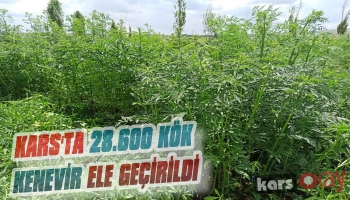 Kars Olay-Kars Valiliğği kontrolünde, İl Jandarma Komutanlığı tarafından yapılan titiz planlama, takip ve çalışma sonucunda Merkez ilçe bölgesinde 15.06.2020 günü saat 12.00 sıralarında 28.600 kök kenevir bitkisi ele geçirildi.