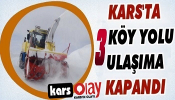 Kars Olay- Kars'ta etkili olan kar yağışı ve tipi dolayısıyla 3 köy yolu ulaşıma kapandı. Köy yollarının ulaşıma açılması için İl Özel İdaresi karla mücadele ekibipleri yolların açılması için çalışma başlattığı öğrenildi.
