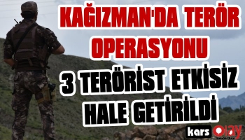 Kars Olay-İçişleri Bakanlığı'ndan yapılan açıklamada; " İç Güvenlik Operasyonları kapsamında; Kars Kağızman Madur kırsalında, İl Jandarma Komutanlığınca bugün gerçekleştirilen hava destekli operasyonda 3 terörist, silahlarıyla birlikte etkisiz hale getirildi. Bölgede operasyonlar devam etmektedir." denildi.