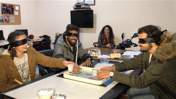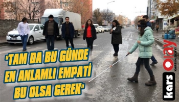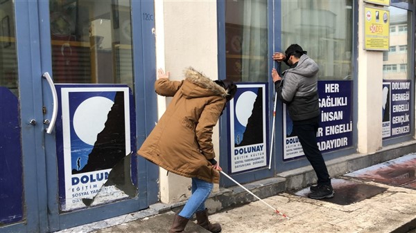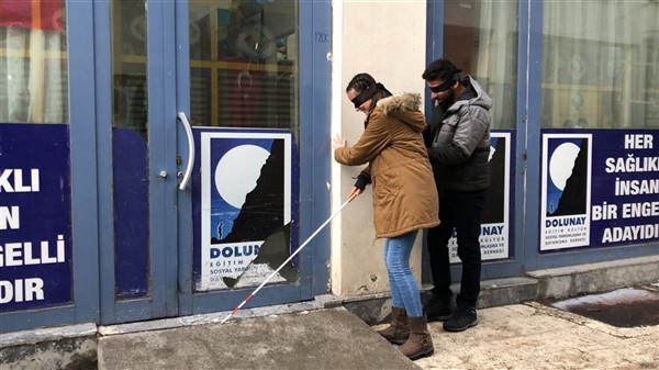 Dolunay Derneği Başkan yardımcısı Engelliler Birim Başkanı Faruk Ocak ve dernek üyeleriyle tanışan öğrenciler duygu ve düşüncelerini paylaştıktan sonra empati etkinliği yaptılar. Önce tekerlekli sandalye ile gezintiye çıkan öğrenciler ardından da empati basketbol maçı ve görme engelli empatisi yaptılar. Gözlerine çekilen siyah bantla kapkara bir dünyaya adım atan öğrenciler yaklaşık 10 dakika empatide oldukça zorlandılar. Adım atmakta bile zorlanan, yürümekte gülük çeken, en ufak engeli aşmayı başaramayan, yolunu, yönünü bulamayınca oldukça duygulandılar. Özellikle de alınan önlemlerin ardından karşıdan karşıya geçmeye çalışan Feyza Nur Murat ve Rabia Çelik gözyaşlarına boğuldu. Görmeden yaşamanın zorluklarını yaşadıklarını, bu süre içinde korku, endişe, heyecan gibi karma karışık duygular içinde olduklarını söyleyerek “Engellileri anlamak için herkesin empati kurması gerekir” dediler.