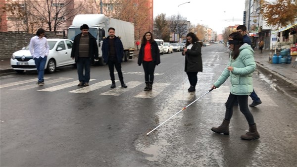 Feyza Nur Murat, “Engelli olmak gerçekten çok zormuş. Karşıdan karşıya geçmek kolay gibi görünüyor ama oradan buraya gelmek gerçekten çok zor. Can güvenliğiniz yok. Karşıdan karşıya geçerken emin olamadan geçtim. Beni sizler yönlendirdiniz ama bu durumu yaşayanlara çok fazla yardım eden olmuyor. O yüzden de çok zor.” dedi.