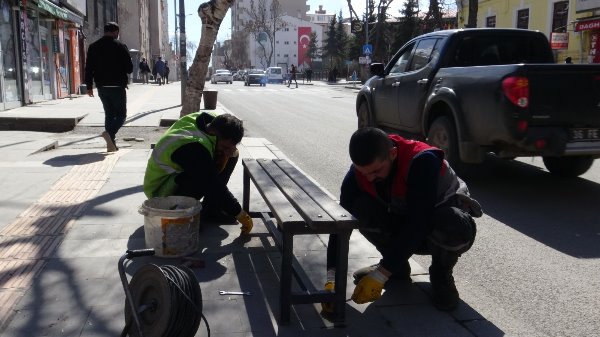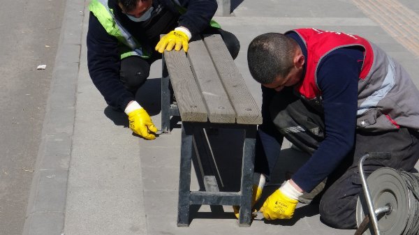 Kars belediyesi cadde ve sokaklarda bulunan oturma banklarını koronavirüsü tedbirleri kapsamında sökmeye devam ediyor. Yaklaşık 60 adet bank belediye personelleri tarafından tek tek sökülerek kaldırıldı.
