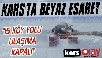 Kars Olay- Kars'ta etkili olan kar yağışı ve tipi dolayısıyla 15 köy yolu ulaşıma kapandı. Köy yollarının ulaşıma açılması için İl Özel İdaresi karla mücadele ekibipleri yolların açılması için çalışma başlattığı öğrenildi.