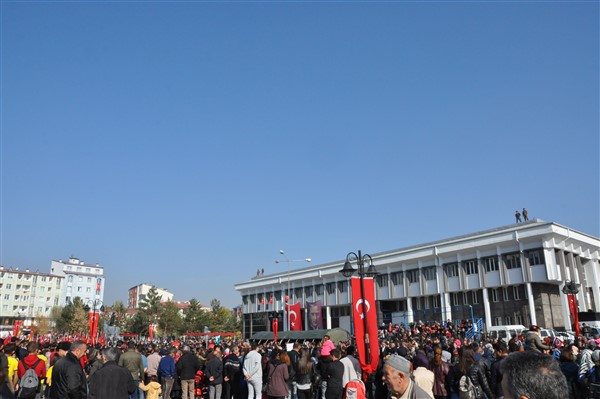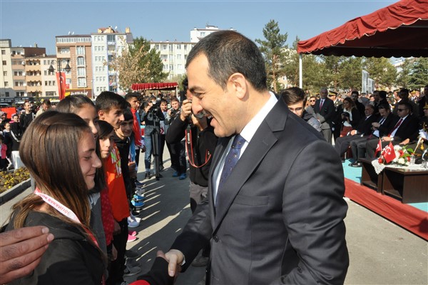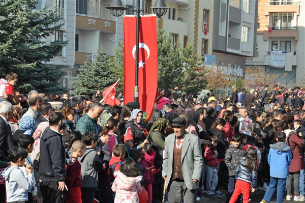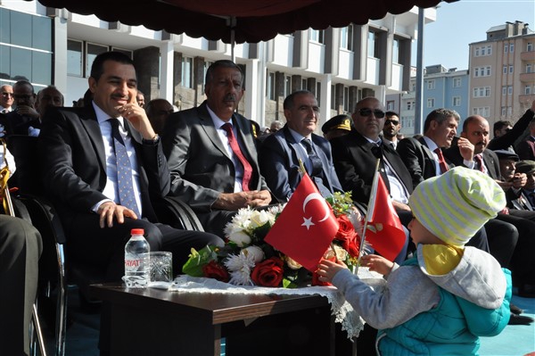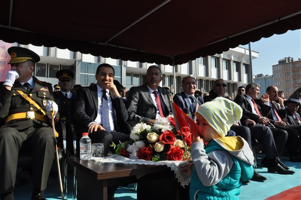 Saygı duruşunda bulunulması ve İstiklal marşının okunmasıyla başlayan törenlerde Protokol, halkın ve öğrencilerin bayramını kutladı.