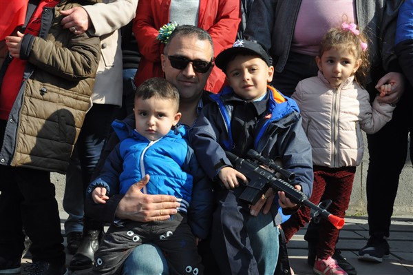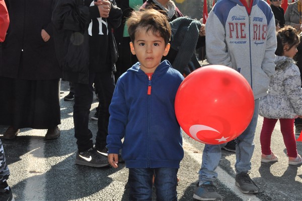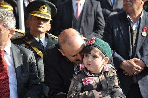 Yaklaşık 3 saat süren törenlerde bir çocuğun protokol masasındaki Türk bayrağını sevip öpmesi güne damgasını vurdu. 3.5 yaşındaki Yavuz Selim Sertçelik bayrağı öperken Vali Türker Öksüz de gururla çocuğun bayrak sevgisini izledi. Tüm protokol hayranlıkla çocuğu izlerken çocuk ise doğal haliyle istifini bozmadan uzun süre bayrağı öpüp kokladı.