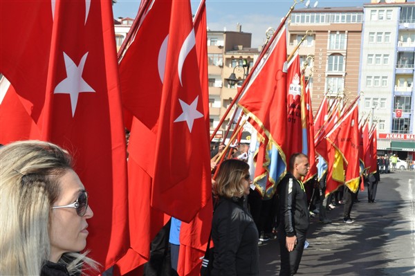 Vali Öksüz ayrıca, “Bilindiği üzere ülkemiz, yıllarca belimizi büken terör belasının yanında son yıllarda siyasi ve ekonomik saldırılara da maruz kalmış ve bu saldırılara karşı mücadele vermektedir. Emperyalist güçlerin maşası olan FETÖ tarafından ülkemizi yok etme amacıyla gerçekleştirilen 15 Temmuz hain darbe girişimi, akabinde yaşadığımız siyasi ve ekonomik saldırılar ve güney sınırlarımızda yaşanan gelişmeler, bize bundan 100 yıl önce yedi düvele karşı verdiğimiz gibi bir varoluş mücadelesini anımsatmaktadır. 100 yıl önce istiklalinden ve istikbalinden ödün vermeyeceğini tüm cihana en güçlü şekilde haykıran bu aziz millet, son günlerde yaşadığı bu olayları yine aziz milletimizin devletine ve iradesine sahip çıkma kararlılığı sonucu geri püskürterek bütün dünyaya çok önemli ve net mesajlar verilmiştir. Birçok alanda dışa bağımlı olmaktan kurtularak kendi ürettiği yerli ve milli silahlarla gerçekleştirdiği barış pınarı harekâtı ile emperyalist güçlerin bu coğrafya üzerindeki yüzyıllık kanlı oyunlarını boşa çıkartan devletimiz, bu coğrafyada olup bitenlere hiçbir zaman sessiz kalmamış her zaman mazlumun ve mağdurun yerinde yer almıştır.1923 ile 2023 arasında kurulan köprüde yine milletimizin azim ve kararlılığıyla yeni destanlar yazılmaktadır. Cumhuriyetimiz, demokrasimiz, güçlü ekonomimiz, yaptıklarımız ve yapabileceklerimiz dostlarımıza güven ve övünç kaynağı olarak örnek teşkil etmekte, milletimize düşmanlık hisleri besleyen karanlık güçleri ve vatan hainlerini ise korku ve telaşa düşürmektedir. Yaşadığımız bu kritik coğrafyadaki mevcut tüm olumsuzluklara rağmen; ortak tarih, ortak kader ve amaç birliği ile vatandaşlık kimliği ilkelerine dayanan temeller üzerinde yükselen cumhuriyetimiz sayesinde bu topraklar üzerinde yaşayan tüm vatandaşlarımız, tasada ve kıvançta bir ve bütün olmada, ocağını ve aşını paylaşmada ne kadar kardeş olduğunu ortaya koymuştur. Dahası, büyük bir millet ve devlet olmanın gereği olarak ecdadı gibi milyonları aşan vatansız insanlara kucağını açmış, dünyanın neresinde olursa olsun mazlumlara sahip çıkmış, zalimin karşısında olmuş, yakın bölgesine ve ötesine barış, adalet ve refahı yaymaya çalışmıştır. Bugün geldiğimiz noktadan daha aydınlık yarınlara ancak cumhuriyetle varabileceğinin bilincinde olan aziz milletimiz, cumhuriyet rejimiyle kıvançlıdır. Cumhuriyetimizin bizleri ulaştırdığı nokta, hepimize heyecan ve ümit vermekte, birlik ve beraberliğimizi pekiştirmekte, milletçe daha iri ve diri olma azmimizi yenilemektedir. Her yerde ve her ferdimizle milletçe devletimizin bekası, milletimizin refahı için çalışmaya, dünyanın gelişmiş ülkeleri ile her alanda yarışmaya ve evrensel insani değerlerinin savunulmasına öncülük etmeye, mazlumların yanında, zalimlerin ve vatan hainlerinin ise karşısında olmaya, her zamankinden daha fazla azimli ve kararlıyız. Ne mutlu ki, bunun için gerekli olan güce, akla, birikime ve tecrübeye sahibiz. Bu inançla, milli ve manevi değerlerimize sahip çıkmaya devam edeceğiz. Gazi Mustafa Kemal Atatürk’ü, kahraman ecdadımızı, aziz şehit ve gazilerimizi milletimizin kalbinde ve gönlünde ebediyete kadar yaşatacağız ve asla unutmayacağız. Biliyoruz ki; ay yıldızlı şanlı al bayrağımızın altında vakit; tek yürek, tek vücut ve tek millet olma vaktidir. Vakit, akıl ve gönül birliği vaktidir. Vakit, ecdattan teslim alınan mirası geleceğimizin teminatı gençlere en iyi şekilde teslim edebilmek için gayret gösterme vaktidir. “ ifadelerine yer verdi.