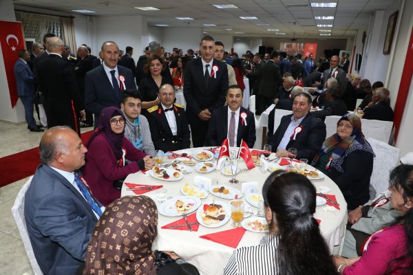 Vali Türker Öksüz, masaları tek tek dolaşarak misafirlerle sohbet etti ve özellikle şehit yakınları ile gazilerin sorun taleplerini dinleyerek çözümü için ilgili kurum müdürlerine talimat verdi.
