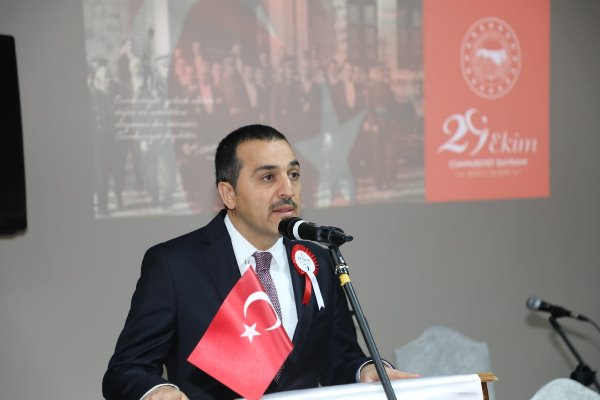 Vali Türker Öksüz, 29 Ekim’in tarihi şan ve şerefle dolu yüce Türk milletinin, yedi düvele karşı göğsünü siper edip, tarihte eşine az rastlanan büyük bir istiklal mücadelesi vererek kurduğu Türkiye Cumhuriyeti Devleti’nin 96’ıncı kuruluş yıldönümü olduğunu vurguladı. Vali Öksüz konuşmasında “19 Mayıs 1919’da başlayan milli mücadelenin, büyük zaferle noktalanmasını takiben, ulu önder gazi Mustafa Kemal Atatürk'ün, 29 Ekim 1923 tarihinde “Türk milletinin tabiatına en uygun yönetim şekli, cumhuriyet idaresidir.” diyerek ilan ettiği cumhuriyetin 96 yıllık evlatlarıyız. Bizler; kahraman ecdadımızın bize bıraktığı bu mirası gelecek kuşaklara daha güçlü olarak devretmenin çabası ve gayreti içerisindeyiz. Gazi Mustafa Kemal Atatürk ve arkadaşlarının öncülüğünde inşa edilen cumhuriyetimiz, sadece bizim milletimizin bağımsızlık arzusunu temsil eden bencil bir mücadele ve kazanım değildir. Türk milletinin kazandığı bu cumhuriyet, emperyalizme ve sömürüye karşı tarihteki en büyük kavga ve mücadelenin diğer adı, mazlumların umut ışığıdır. Bizim neyimiz varsa alın terimizdendir. Ne elde ettiysek çalışarak, mücadele ederek, şehit kanı dökerek elde ettik. Aradan geçen 96 yılda demokrasi, eğitim, sağlık, bilim, ulaştırma olmak üzere birçok alanda önemli mesafeler kat ederek, yaptığı dev atılımlar ile bölgesinin ve dünyanın parlayan yıldızı haline gelen cumhuriyetimiz, köklü tarihi geçmişi, zengin kültürü ve jeopolitik konumuyla önünde uzanan aydınlık yolda, emin adımlarla ilerlemeye devam edecektir. Cumhuriyetimizin kuruluşundaki ortak duygu ve hedef etrafında kenetlenerek bugünlere gelen aziz milletimiz, günümüzde de yaşadığı tüm badireleri birlik ve beraberliğinden ödün vermeden aşmayı başararak dünyadaki tüm mağdur ve mazlum topluluklara umut ve ilham kaynağı olmaya devam etmektedir.” dedi.
