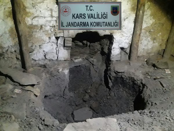 Kars Olay-Kars Valiliği'nden yapılan açıklamada; "İl Jandarma Komutanlığımız tarafından 05.12.2019 tarihinde alınan duyum üzerine Selim İlçesi Katranlı Köyünde iki şahsa ait birbirine bitişik iki boş evin ara duvarların yıkılmak suretiyle evlerin içerisinde define bulmak maksadıyla izinsiz kazı yapan 2 şüpheli şahıs ele geçirilmiştir.
