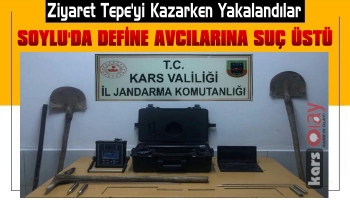 Kars Olay-Kars Valiliği kontrolünde Kars İl Jandarma Komutanlığınca; alınan bir duyum üzere yapılan titiz planlama, çalışma ve takip sonucunda, Merkez İlçesi Soylu Köyü Ziyaret Tepe mevkiinde 02.05.2020 günü izinsiz kazı yapan (6) şüpheli şahıs suç aletleri ile birlikte ele geçirildi.