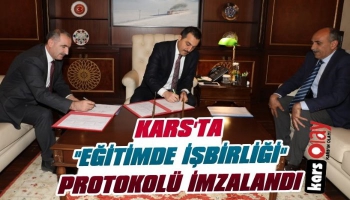 Konuşmaların ardından Kars Eğitimde İşbirliği Protokolü,Kars Valisi Türker Öksüz ile Kafkas Üniversitesi Rektörü Prof. Dr. Hüsnü Kapu tarafından imzalandı.