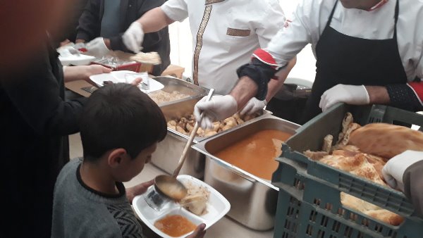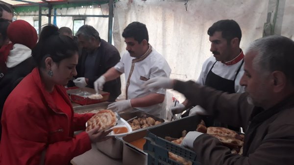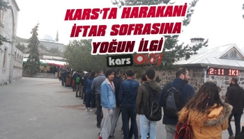 Kars Olay- Kars'ta Türkiye Diyanet Vakfı ve Kars İl Müftülüğü koordinesinde kurulan ve günde yaklaşık 1500 kişiye yönelik iftar yemeği verecek olan Harakani Sofrası'na ramazan ayının ilk iftarında Karslı vatandaşlar yoğun ilgi gösterdi.