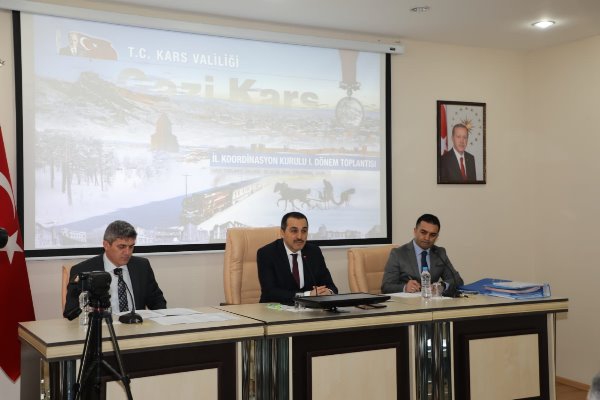 Kars Olay- Valilik Gazi Kars Toplantı Salonunda yapılan toplantıya; Belediye Başkanı Ayhan Bilgen, Vali Yardımcısı Tahsin Aksu, Kaymakamlar, İlçe Belediye Başkanları, kurul üyeleri ile basın mensupları katıldı.
