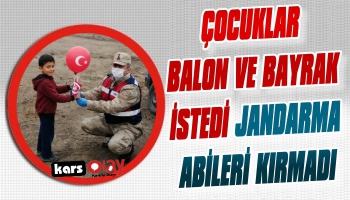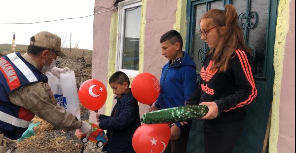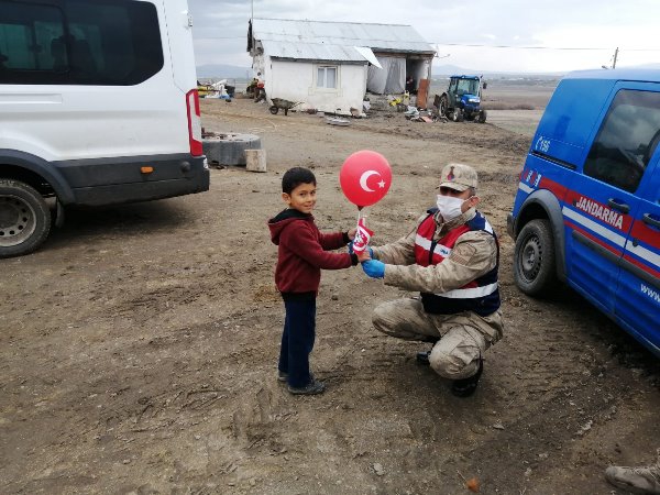 Kars Olay-Kars İl Jandarma Komutanlığı, Akyaka İlçesi Esenyayla Köyünden Jandarma 112 Destek Hattını arayarak 23 Nisan kutlamaları için bayrak ve balon isteyen (9) yaşındaki Yaren Demir'e Akyaka İlçe Jandarma Komutanlığı tarafından bayrak, balon ve çeşitli hediyeler götürülerek, çocukların 23 Nisan Bayramına ortak oldular.
