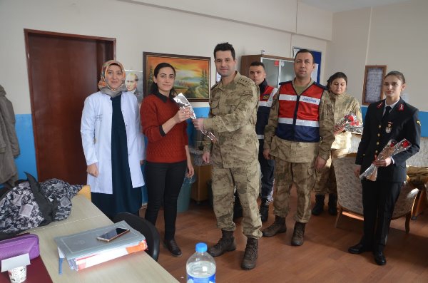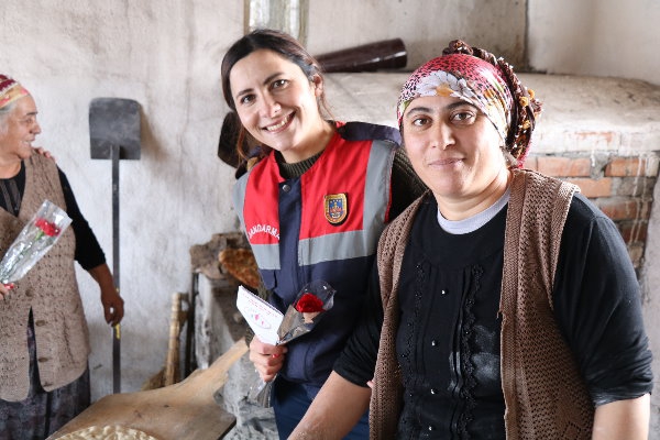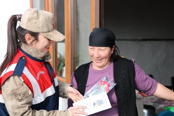 Ziyaretlerde jandarma personelimiz tarafından kadınlarımıza 5 Aralık Dünya Kadınlar Günü hakkında bilgilendirme broşürü dağıtarak çiçek takdiminde bulunulmuştur." denildi.