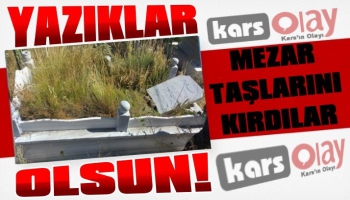 Kars Olay- Kars'ta Bayrampaşa Mahallesi ile Karadağ Mahallesine ait mahalle mezarlığında mezar taşları kimliği belirsiz kişi yada kişilerce kırılarak tahrip edildi.