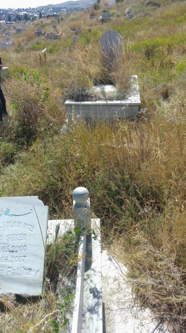 Kurban Bayramı dolayısıyla mezarlık ziyareti için mezarlığa giden vatandaşlar gördükleri durum karşısında üzüntü yaşadılar. Mezarlıkta bulunan mezarların isim ve ölüm bilgilerinin yazılı olduğu taşların kırıldığını gören vatandaşlar yetkililerden bunu yapan şahısların bulunmasını istediler.