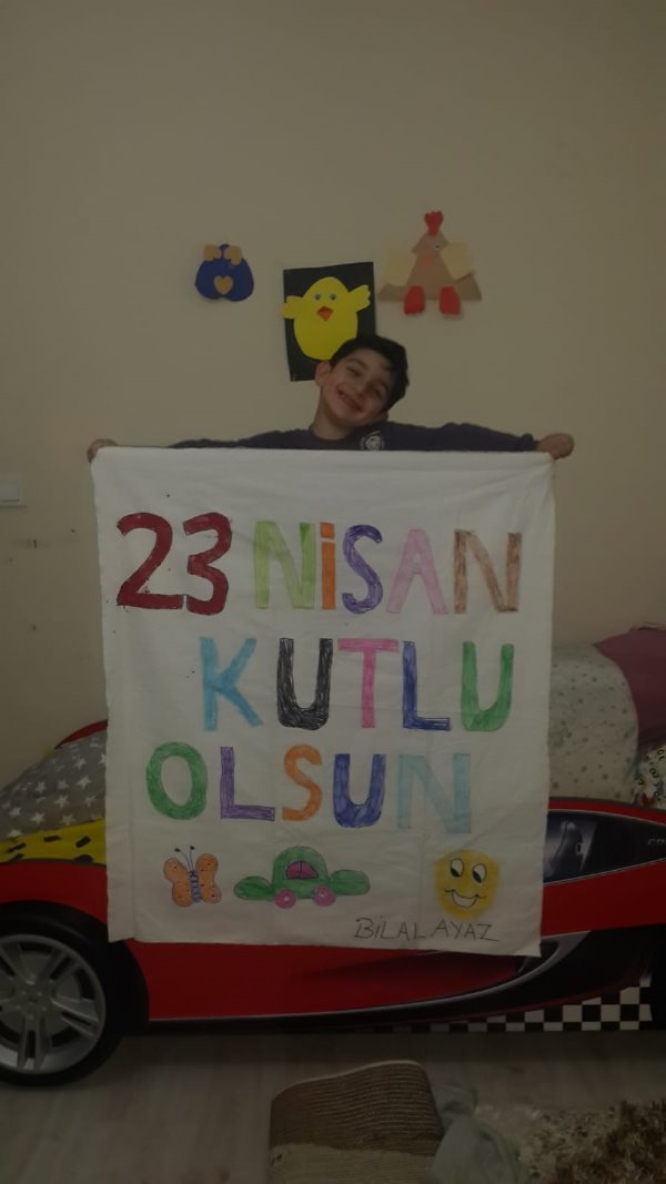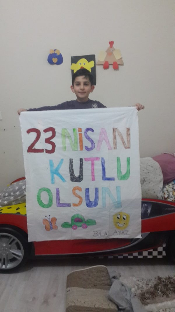 İşte Anne ve Babası tarafından hazırlanan 23 Nisan kutlamasına evlerinden okudukları 23 nisan şiiri ile video klip hazırlayan Bilal Ayaz Samancı, evinde 23 Nisan afişi hazırlayarak Ulusal Egemenlik ve Çocuk Bayramını evde kutlayan binlerce çocuktan biri oldu.