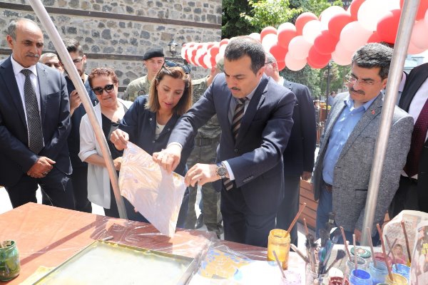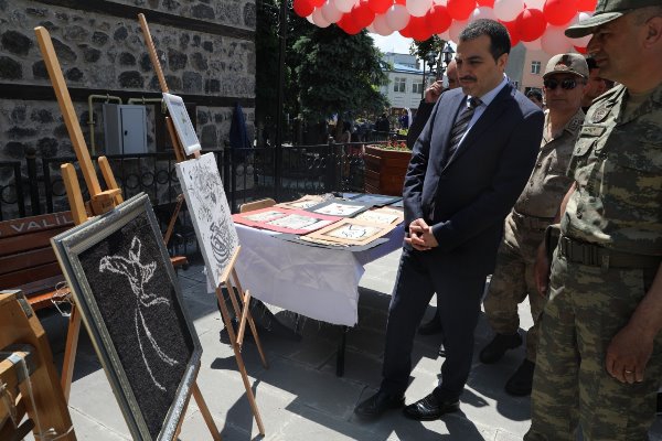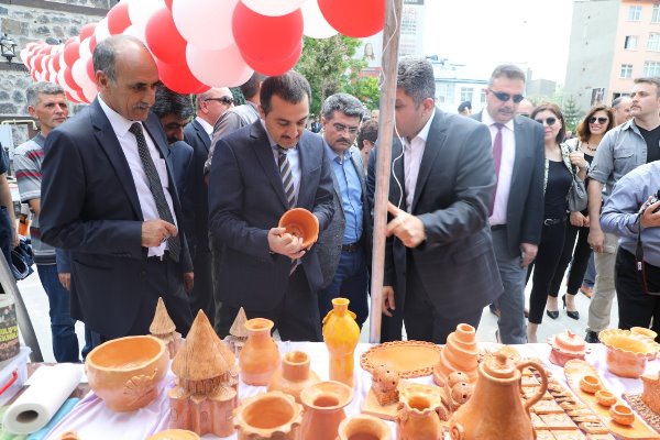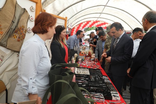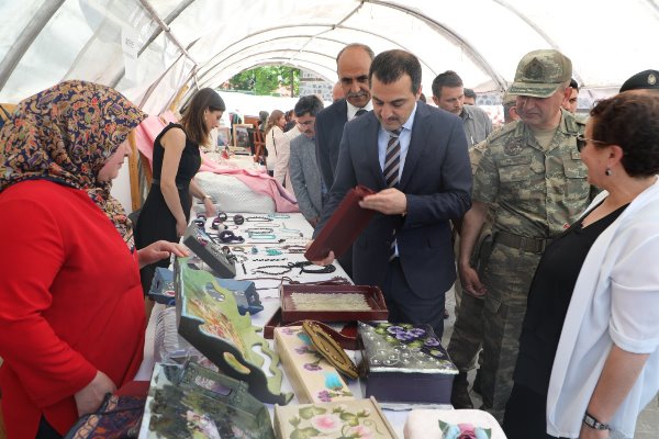 Gazi Ahmet Muhtar Paşa (GAMP) Konağı yanındaki kent meydanında düzenlenen etkinlikte sunulan halk oyunları gösterisinin ardından stantları gezen Kars Valisi Türker Öksüz, stantlarda yer alan ürünler ve yapılan çalışmalar hakkında kursiyerlerden bilgi aldı.