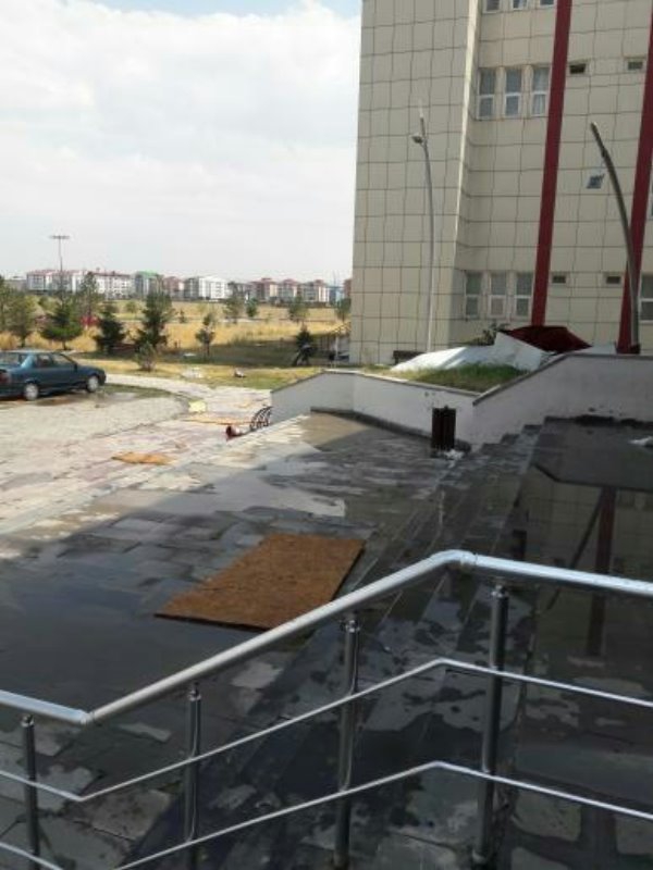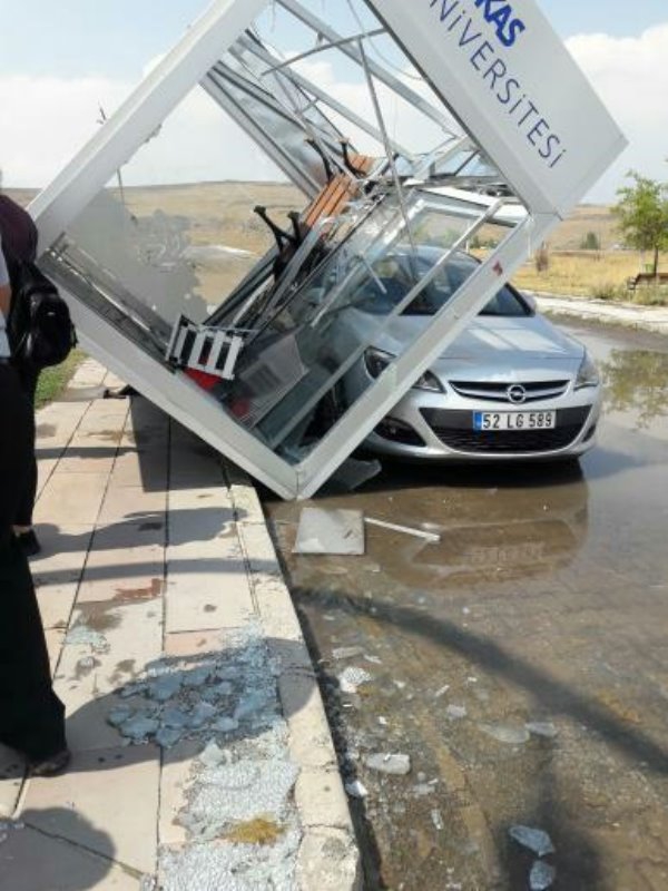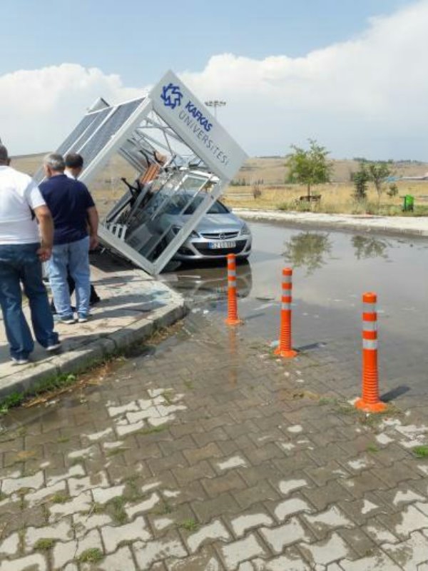 Kafkas Üniversitesi Araştırma Hastanesi önünde bulunan otobüs durağı şiddetli rüzgar nedeniyle bağlantılarından koparak park halindeki aracın üzerine düştü. Rüzgarla birlikte Kafkas Üniversitesi Araştırma Hastanesi'nin çatıları da rüzgara dayanamadı. Rüzgarın etkisini arttırması sonrasında çatı parçaları da yüksekten uçarak diğer araçların camlarına düşerek zarar verdi. Ayrıca rüzgar anında vatandaşların alanda bulunmaması büyük bir tehlike yaşanmasının önüne geçti.