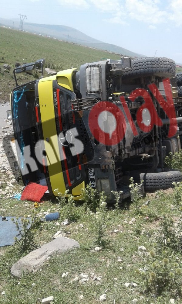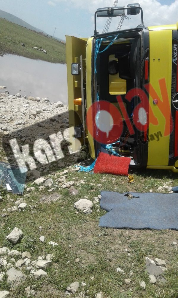 Kars Olay- Kars'ın Digor İlçesi'nde Kars İl Özel İdare'ye ait damperli kamyon yol çalışması yaptığı sırda yolun kenarına kayarak yan yattı. Edinilen bilgiye göre yapılan yol çalışması için toprak taşıyan kamyon yolun kenarına kayarak yan devrildi. Kaza'da kamyon sürücüsü yara almadan kurtulurken olayla ilgili olay yeri inceleme ekiplerinin raporu beklendiği, araştırma ve incelemenin ise devam ettiği öğrenildi.