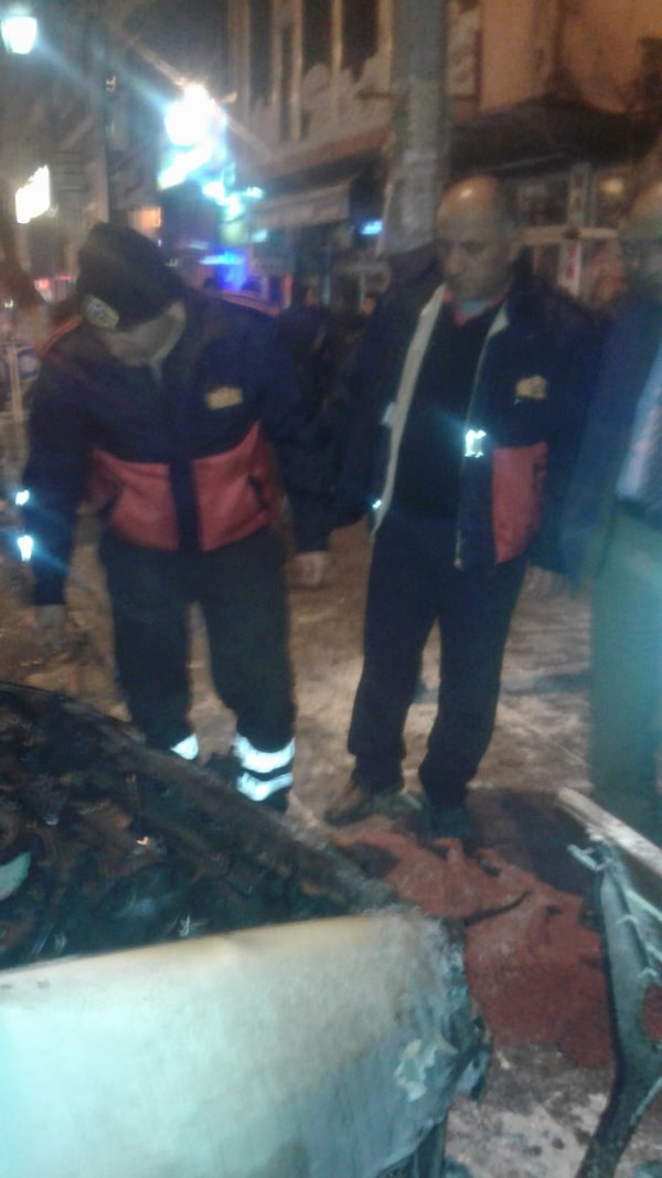 Olayı gören çevre sakinleri durumu itfaiye ekiplerine bildirdi. Olay yerine kısa süre içerisinde gelen itfaiye ekipleri aracın motor kısmında oluşan duman ve alevlere müdahale ederek kontrol altına altı. İtfaiye ekipleri tarafından araçta bulunan akü bağlantıları kesilirken, motor kısmındaki alevler söndürüldükten sonra soğutma çalışması yapıldı.