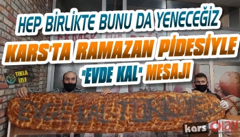 Kars Olay-Kars'ta Karadeniz Ekmek Fırını Sahibi Mustafa Kaya Ramazan pidesi yapıp, üzerine çörek otuyla 'Evde Kal Türkiye' yazarak, evde kalınmasının önemine dikkat çekti.