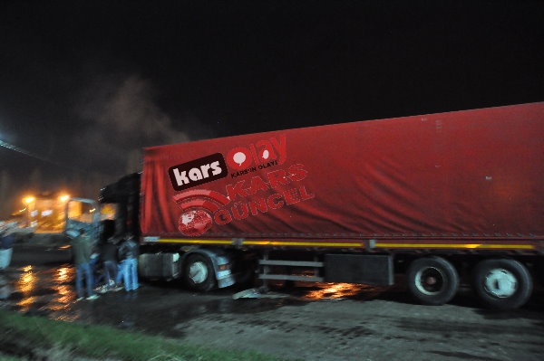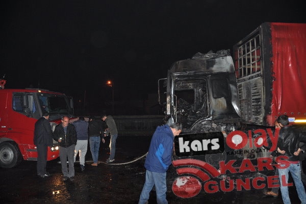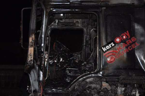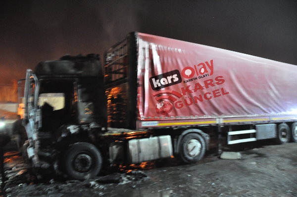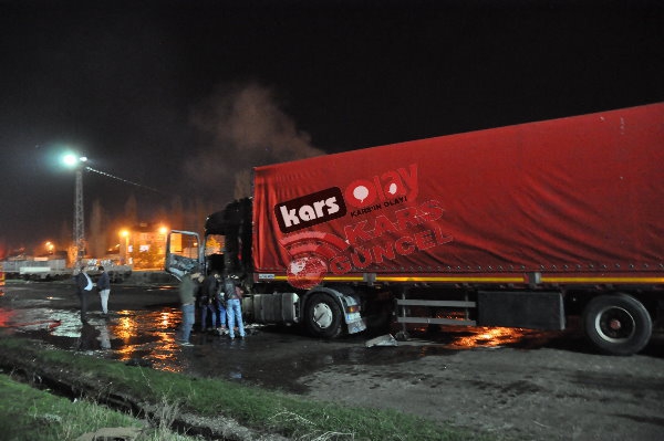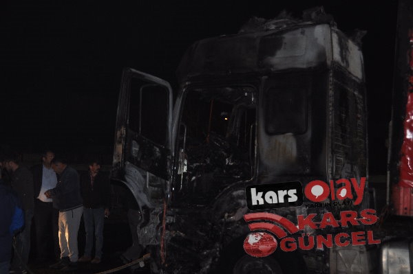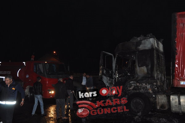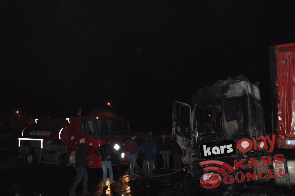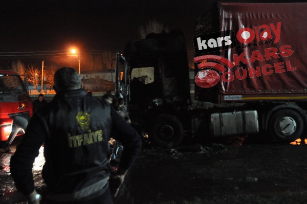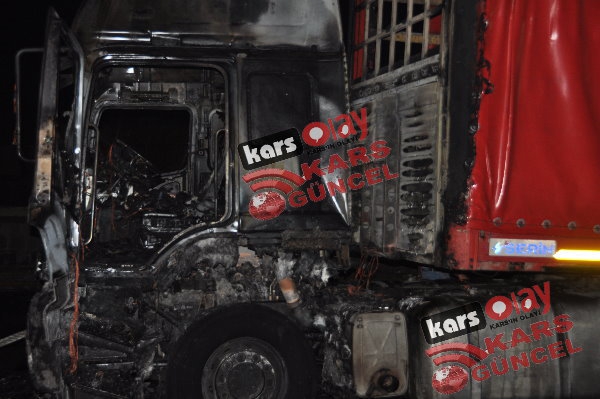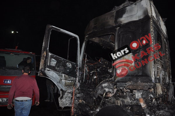 Kars'ta meydana gelen yangında tır tamamen kullanılamaz hale geldi. Edinilen bilgiye göre akşam 21:00 sıralarında yük almak için peron kısmına gelen idaresindeki İbrahim İpto idaresindeki 76 DE 843 plakalı tır bir anda alev alarak yanmaya başladı. Durum karşısında sürücü hemen araçta bulunan yangın söndürme tüplerini kullanarak yangını söndürmeye çalışsa da başarılı olamadı. Çevre sakinleri yangını itfaiye ekiplerine haber verdi. Olay yerine gelen itfaiye ekipleri tır yangınına müdahale etmeye çalıştı. Tırda bulunan yakıt depolarına da sıçrayan yangın aracın kupa kısmını tamamen sardı. İtfaiye ekiplerinin müdahaleleri sonrasında araçta çıkan yangın kontrol altına alınabildi.