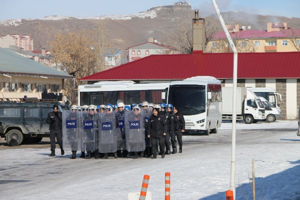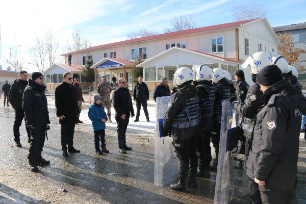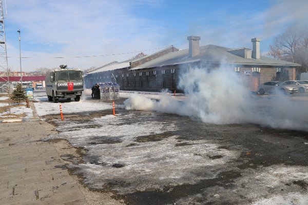 Kars Olay- Kars'ta polis ekipleri Kars genelinde gerçekleşebilecek olası toplumsal olaylara hızlı ve etkin bir şekilde müdahale edebilmek amacıyla Kars İl Emniyet Müdürlüğünün çeşitli birimlerinde görevli personel ile kurulan “Toplu Kuvvet” ve Çevik Kuvvet Şube Müdürlüğü personelinin katılımıyla “Toplumsal Olaylara Müdahale Tatbikatı” yaptı.