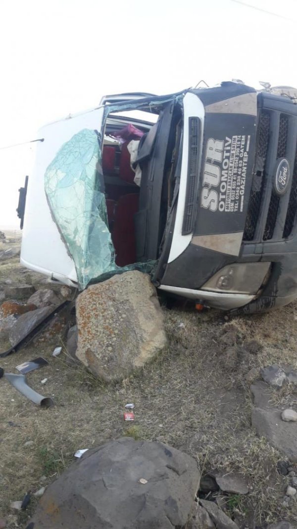 Göle istikametine doğru gitmekte olan köy minibüsüne iddiaya göre, karşı istikametten gelen tırın dorsesinden fırlayan lastik çarptı. Lastiğin minibüse çarpmasıyla birlikte minibüs sürücüsü direksiyon hakimiyetini kaybederek şarampole uçtu. Kaza yerine sağlık ekipleri sevk edildi.
