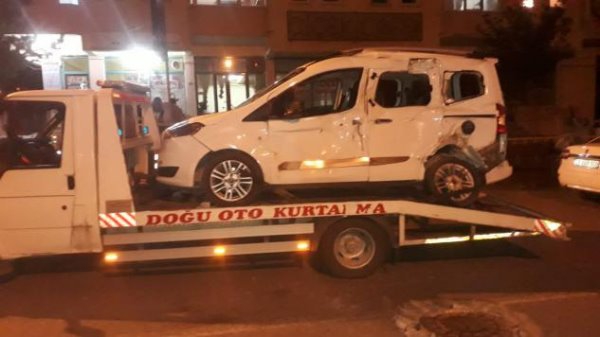 Kars Olay- Kars'ta gece saatlerinde bölge trafik kavşağında meydana gelen trafik kazasında tırın çarptığı kamyonet metrelerce sürüklenerek durabildi.