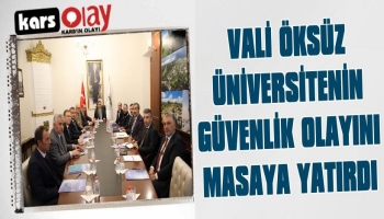 Kars Olay- Kars Valisi Türker Öksüz, toplantıda yaptığı değerlendirmede; Türkiye’nin değişik bölgelerinden Kars’a gelen üniversite öğrencilerinin huzur ve güven ortamında eğitim almaları ve iyi yetişmelerinin her şeyden değerli olduğunu, üniversite ile ilgili herhangi bir sıkıntı yaşanmaması ve öğrencilerin can ve mal güvenliğinin sağlanması için her türlü tedbirin alındığını belirterek tüm kurumların üzerine düşen görevi hassasiyetle yerine getirmeleri talimatını verdi.
