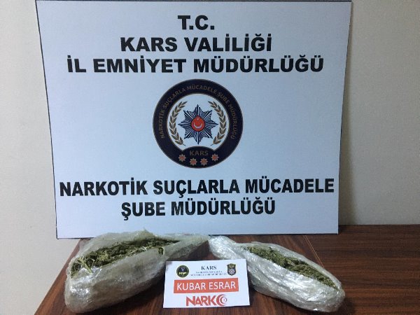 Kars Olay-Kars İl Emniyet Müdürlüğü Narkotik Suçlarla Mücadele Şube Müdürlüğü ekipleri istihbari ve teknik çalışmalar yaptığı operasyonda yolcu otobüsünde bulunan yolcunun valizinde 903 gram esrar ele geçirdi. Olayla ilgili gözaltına alınan şüpheli C.A. emniyetteki işlemlerinin ardından hakim karşısına çıkartılmak üzere adliyeye sevk edildi.