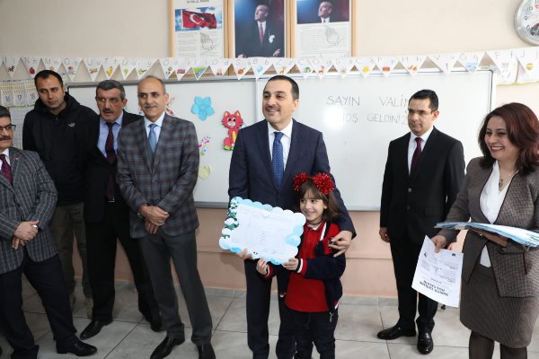 Vali Türker Öksüz, 2019-2020 eğitim-öğretim yılının yarıyıl tatiline girmesi üzerine Zübeyde Hanım İlkokulunda düzenlenen yarıyıl karne dağıtım törenine katılarak öğrenciler ile bir araya geldi.