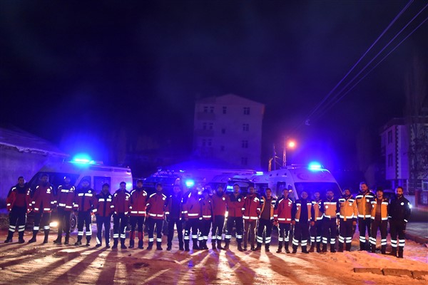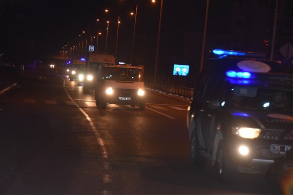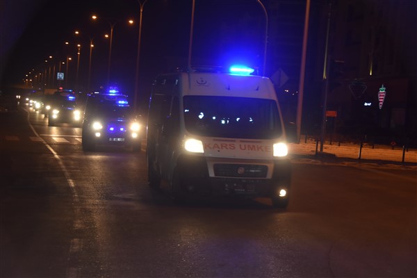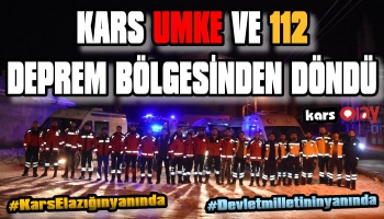 Elazığ’daki çalışmalarını başarıyla tamamlayan UMKE ve 112 sağlık ekipleri 9 araçla birlikte bugün (26 Ocak 2020) saat: 01.30 sıralarında Kars’a döndüler.