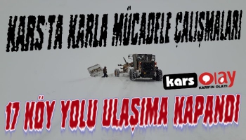 Kars Olay- Kars'ta etkili olan kar yağışı ve tipi dolayısıyla 17 köy yolu ulaşıma kapandı. Köy yollarının ulaşıma açılması için İl Özel İdaresi karla mücadele ekibipleri yolların açılması için çalışma başlattığı öğrenildi.