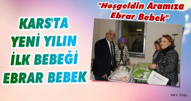 Kars Olay- Kars'ta 2018 yılının ilk bebeği Ebrar bebek oldu. Yeni yılın ilk dakikalarında Kars'ta ilk doğum haberi Kars Harakani Devlet Hastanesi'nden geldi. Baba Erdoğan Sağlık ve anne Sezen Sağlık'ın üçüncü bebekleri "Ebrar" 3 kilogram ağırlığında sağlıklı olarak 00:05'te dünyaya geldi.