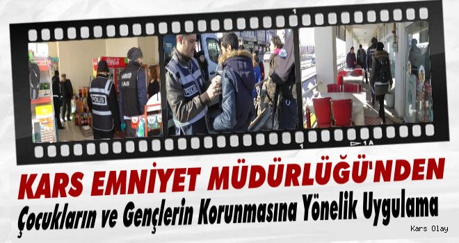 Kars Olay- Kars Emniyetinden yapılan yazılı açıklamada; "Emniyet Genel Müdürlüğünün koordinesinde tüm Türkiye 'de olduğu gibi Kars Genelinde gerçekleştirilen ''Çocukların ve Gençlerin Korunmasına Yönelik Denetim Uygulaması'' adlı denetimler kapsamında Asayiş, Narkotik, Çocuk, Çevik Kuvvet Şube Müdürlükleri ve Mobil Ekiplerin katılımı ile toplam 24 (yirmidört) Ekip ve 90 (Doksan) personel ile yapılan uygulamalarda ; 18 okul ve çevresi, 6 internet kafe, 3 playstation, 9 kahvehane, 1 iddia bayi, 8 büfe, 9 park ve bahçe, 20 okul servisi, 5 araç ve sürücüsü kontrol edilmiş, 272 şahsın GBT sorguları yapılmış, Yoklama kaçağı olarak aranan 1 şahsa gerekli tebligat yapılarak serbest bırakılmış, Okul saatlerinde parkta bulunan 9 öğrenci uyarılıp okuluna yönlendirilmiş, 1 araç sürücüsüne 519 TL para cezası yazılmış, 1 şahsın üzerinde bıçak bulunmuş, 6136 sayılı kanuna muhalefetten işlem yapılmış, 2 umuma açık mekan ve içerisinde bulunan 4 şahsa 5326 sayılı kabahatler kanunu 39. Maddesi kapsamında kapalı alanda sigara içmekten gerekli idari işlem tatbik edilerek toplamda 5000 tl para cezası uygulanmıştır.