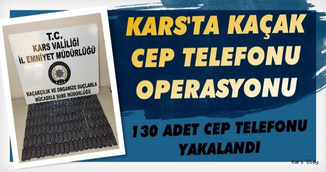 Kars Olay-Kars İl Emniyet Müdürlüğü ,Kaçakçılık ve Organize Suçlarla Mücadele Şube Müdürlüğü ve Narkotik Suçlarla Mücadele Şube Müdürlüğü görevlileri tarafından 29.12.2017 günü yapılan opertasyonda 130 adet gümrük kaçağı cep telenu ele geçirildi.
