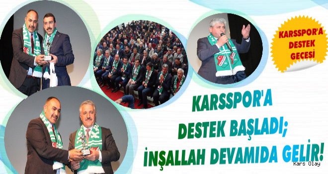Kars Halk Eğitim Merkezi Çok Amaçlı Salonu’nda düzenlenen Karsspor’a Destek Gecesi’ne Ulaştırma Denizcilik ve Haberleşme Bakanı Ahmet Arslan, AK Parti Kars Milletvekili Dr. Yusuf Selahattin Beyribey, Kars Valisi Rahmi Doğan, önceki dönem milletvekili Prof. Dr. Yunus Kılıç, Belediye Bakanı Murtaza Karaçanta, İl Emniyet Müdürü Faruk Karaduman, AK Parti Kars İl Başkanı Adem Çalkın, İl Jandarma Komutanı J.Albay Serdar Güngör, Karsspor Kulüp Başkanı Muharrem Yıldız, Kağızman Belediye Başkanı Nevzat Yıldız, çok sayıda daire amiri, Karsspor yöneticileri, teknik heyet, futbolcular ve taraftarlar katıldı. – KAFKAS HABER AJANSI